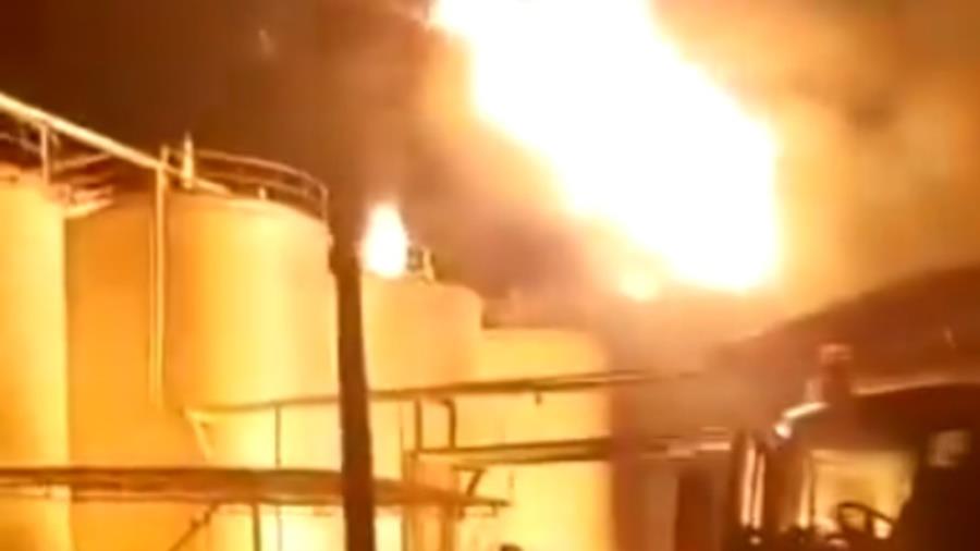 Τοπικός αξιωματούχος απέδωσε την πυρκαγιά σε «πρόσκρουση βυτιοφόρου σε δεξαμενές», συμπληρώνοντας ότι το περιστατικό διερευνάται.