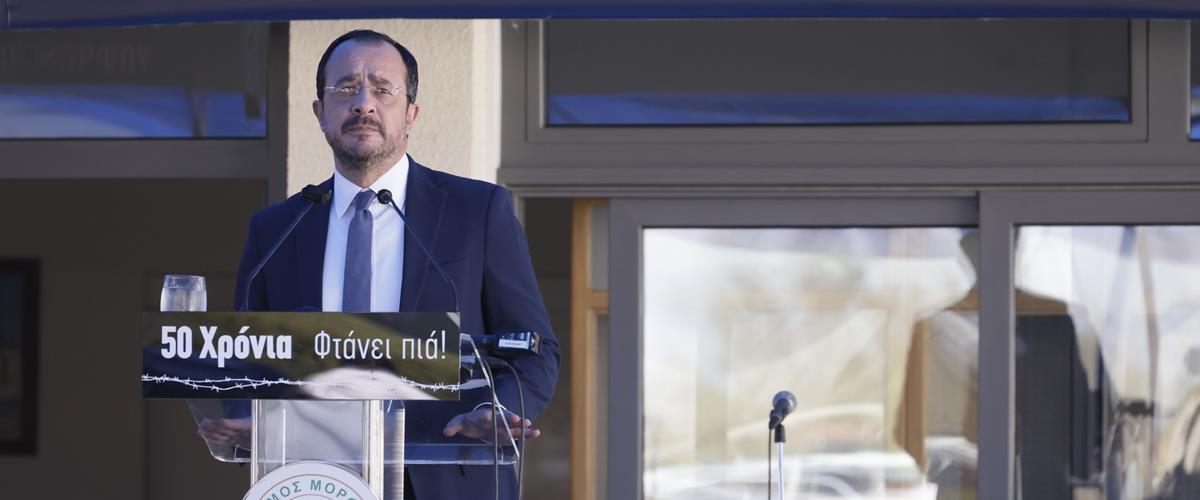 Ο Πρόεδρος υπογράμμισε, ακολούθως, πως «η Μόρφου είναι αδιαπραγμάτευτη, όπως ασφαλώς και κάθε σπιθαμή της κατεχόμενης γης μας», προσθέτοντας ότι «αδιαπραγμάτευτη είναι και η αξίωσή μας για τη μετεξέλιξη της Κυπριακής Δημοκρατίας σε ένα διζωνικό δικοινοτικό κράτος που θα διασφαλίζει τα βασικά ανθρώπινα δικαιώματα για όλους τους νόμιμους πολίτες του, τους Ευρωπαίους πολίτες του. Διεκδικούμε μια πατρίδα που θα προσφέρει σε όλους τους πολίτες της τη δυνατότητα να ζουν και να δημιουργούν σε συνθήκες ειρήνης, ασφάλειας και ευημερίας».