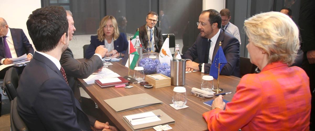 Οι αυξημένες μεταναστευτικές ροές που επηρεάζουν σε μεγάλο βαθμό χώρες της περιοχής όπως την Κύπρο, αλλά και άλλα κράτη μέλη της Ευρωπαϊκής Ένωσης (ΕΕ) βρέθηκαν στο επίκεντρο τετραμερούς συνάντησης στο πλαίσιο της Συνόδου των MED9, μεταξύ του Προέδρου της Δημοκρατίας, Νίκου Χριστοδουλίδη, της Προέδρου της Ευρωπαϊκής Επιτροπής, Ursula von der Leyen, της Πρωθυπουργού της Ιταλίας, Giorgia Meloni και του Βασιλιά της Ιορδανίας, Abdullah II bin Al-Hussein, με βασικό θέμα συζήτησης τη Συρία.