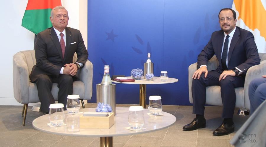 Ο Πρόεδρος της Κυπριακής Δημοκρατίας κ. Νίκος Χριστοδουλίδης πραγματοποίησε συνάντηση με τον Βασιλιά της Ιορδανίας Abdullah II bin Al-Hussein στο περιθώριο της Συνόδου των MED9, που πραγματοποιείται σήμερα στην Πάφο.