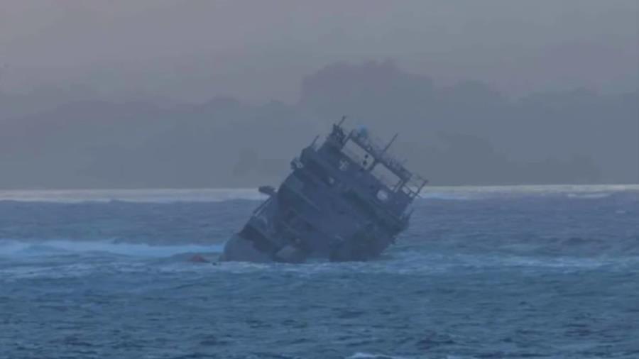 Βίντεο που μεταδόθηκαν από τοπικά ΜΜΕ εικονίζουν καπνό να αναδίδεται από το πλοίο προτού βυθιστεί.