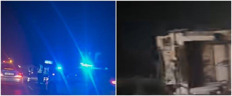 Ακολούθως, το όχημα ανατράπηκε και αφού σύρθηκε για αρκετά μέτρα, ακινητοποιήθηκε στη μεσαία διαχωριστική νησίδα.