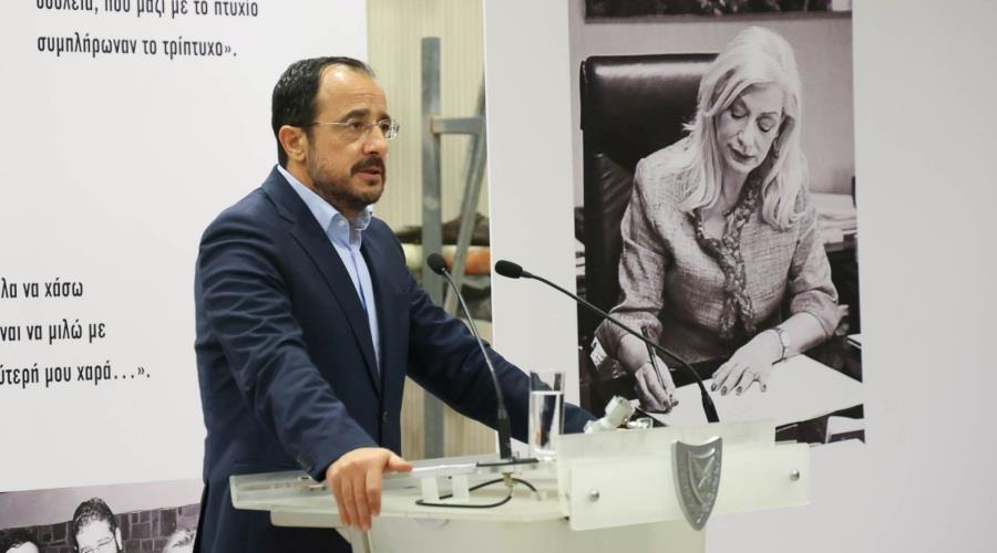 Στον δικό του χαιρετισμό ο Πρόεδρος Χριστοδουλίδης μίλησε για την πολιτικό Ζέτα Αιμιλιανίδου, η οποία τύγχανε αναγνώρισης, σεβασμού και αποδοχής από όλο τον κόσμο και κέρδισε με τη δουλειά της την εμπιστοσύνη και την αγάπη σχεδόν όλων των πολιτών της χώρας μας.