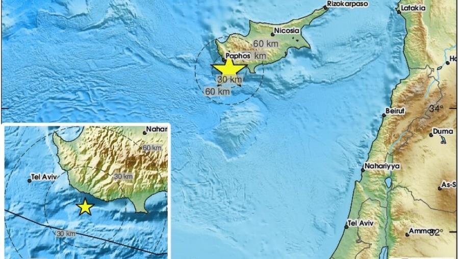Επίκεντρο του σεισμού ήταν η θαλάσσια περιοχή μεταξύ Λεμεσού και Πάφου. Πιο συγκεκριμένα, ο σεισμός καταγράφηκε σε απόσταση 22 χιλιομέτρων από την Πάφο και 47 χιλιομέτρων από τη Λεμεσό.