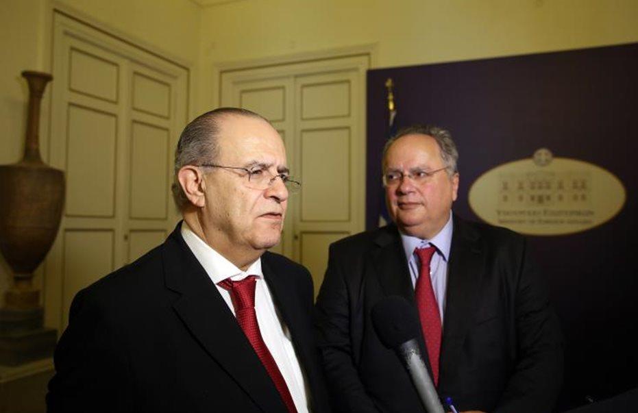 Από την πλευρά του ο κ. Κοτζιάς είπε ότι κατά τη συνάντηση «κουβεντιάσαμε για όσα έχουμε συμφωνήσει και τον τρόπο που θα υλοποιηθούν μέχρι τις 11 του Οκτώβρη (όταν θα γίνει η τριμερής Σύνοδος Κορυφής στο Κάιρο). Είχαμε ανταλλαγή απόψεων για τις εξελίξεις στην περιοχή και ιδιαίτερα στο συριακό και εκφράσαμε εκατέρωθεν την αλληλεγγύη και την υποστήριξη μας».