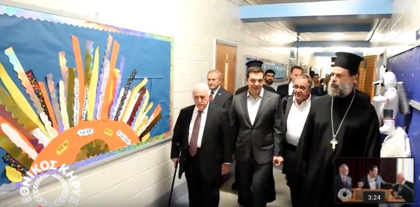 Στο βίντεο που ακολουθεί ο κ. Αλέξης Τσίπρας κατά την επίσκεψή του χαιρετά διάφορους παράγοντες της ομογένειας και συνεχίζει και με τους μαθητές όταν μπαίνει μέσα στη σχολική αίθουσα.