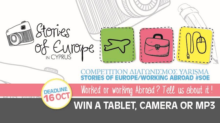Η εργασιακή σας εμπειρία στο εξωτερικό είναι το θέμα του νέου διαγωνισμού που έχει προκηρύξει η ΙΜΗ και το Κέντρο Στήριξης ΜΚΟ στο πλαίσιο του προγράμματος Stories of Europe. Το πρόγραμμα Stories of Europe, το οποίο υλοποιείται με τη στήριξη της Αντιπροσωπείας της Ευρωπαϊκής Επιτροπής στην Κύπρο, έχει ως στόχο να συλλέξει και να παρουσιάσει, μέσω κοινωνικών δικτύων, ιστορίες από πολίτες και επισκέπτες της Κύπρου.