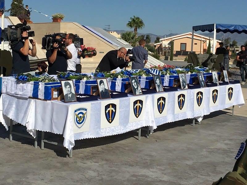 Μιλώντας ενώπιον των συγγενών ο Πρόεδρος της Δημοκρατίας Νίκος Αναστασιάδης είπε πως νιώθει δέος συγκλονισμό και βαθιά συγκίνηση, αλλά και περηφάνια αντικρίζοντας από τη μια τα φέρετρα της τιμής ενός έθνους και από την άλλη τους ζωντανούς ήρωες και συγγενείς των αθανάτων.
