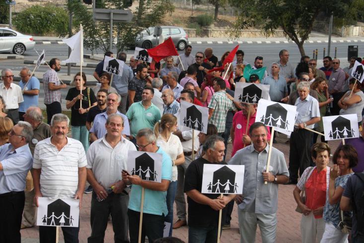 Οι διαμαρτυρόμενοι κρατούσαν πανό που ανέγραφαν μεταξύ άλλων “Κανένα σπίτι στα χέρια τραπεζίτη” και “Κύπρος δίχως εκποιήσεις”. Στην εκδήλωση αναγνώσθηκε και μήνυμα της Ευρωπαϊκής Συμμαχίας Δράσεων.