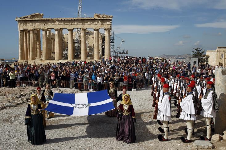 Τελετή έπαρσης της ελληνικής σημαίας πραγματοποιήθηκε το απόγευμα της Τετάρτης, με αφορμή την 72η επέτειο απελευθέρωσης της Αθήνας από τα ναζιστικά στρατεύματα, στον ιερό βράχο της Ακρόπολης, παρουσία εκπροσώπων της πολιτικής και θρησκευτικής ηγεσίας της Ελλάδας.