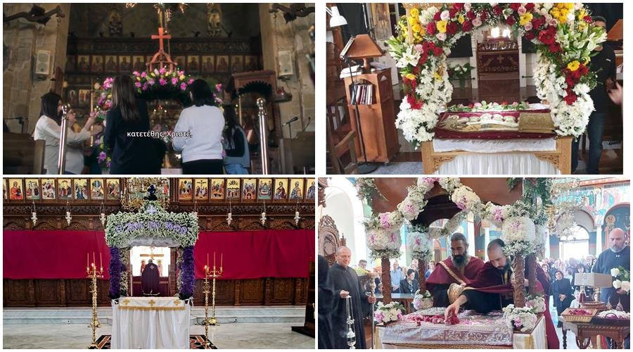 Για ακόμη μία χρονιά, οι Επιτάφιοι έχουν στολιστεί με λουλούδια, τα οποία περιβάλλουν το σώμα του Χριστού. Τριαντάφυλλα διαφόρων χρωμάτων έχουν τοποθετηθεί στο κουβούκλιο, ενώ ροδοπέταλα έχουν σκορπιστεί στην επιφάνεια, γύρω από τον Χριστό.