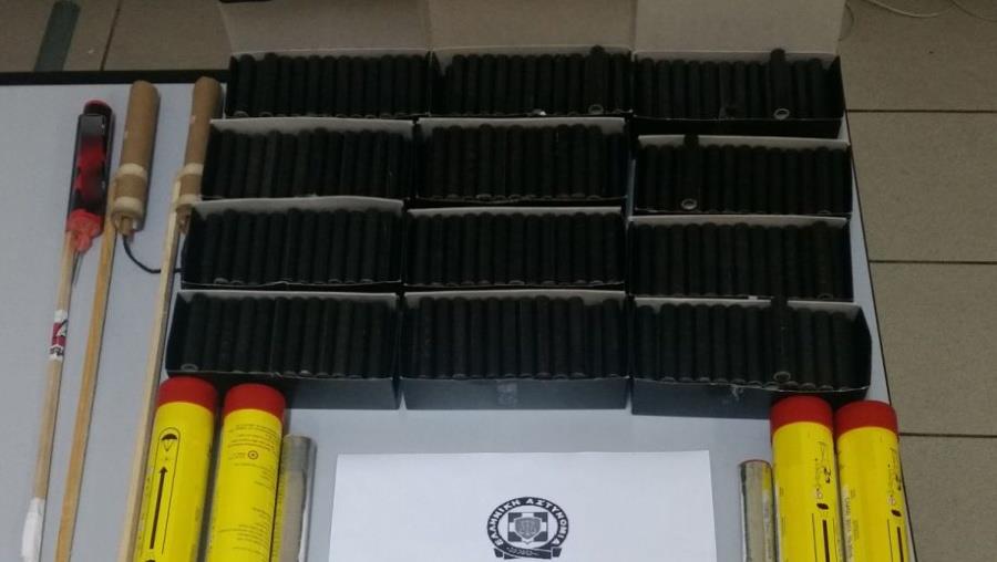 Από τον έλεγχο, εντοπίστηκαν συνολικά 39 εργοστασιακές κροτίδες, 20 καπνογόνα και 4 πυρσοί, με την Αστυνομία να προχωρά στη σύλληψη του νεαρού.
