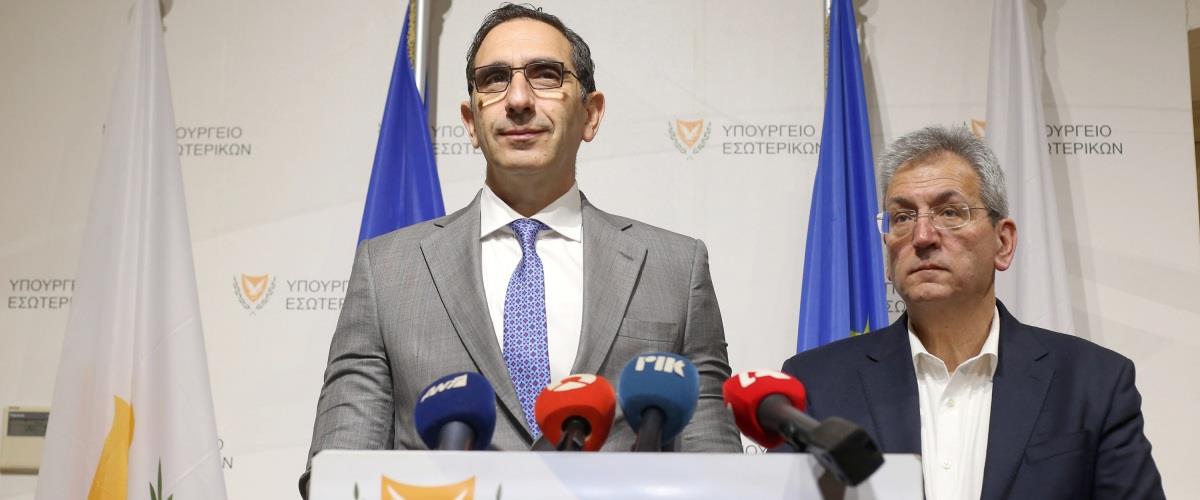 Ο Υπουργός Εσωτερικών προέβη στις δηλώσεις για την πρόταση νόμου για τις επικίνδυνες οικοδομές μαζί με τον Βουλευτή της ΔΗΠΑ-Συνεργασία, μέλος της Κοινοβουλευτικής Επιτροπής Εσωτερικών, Μαρίνο Μουσιούττα.