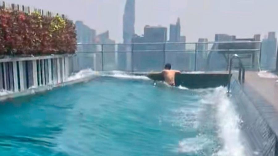 ΒΙΝΤΕΟ: Μάχη επιβίωσης στην πισίνα ουρανοξύστη από τον σεισμό των 7,7 Ρίχτερ