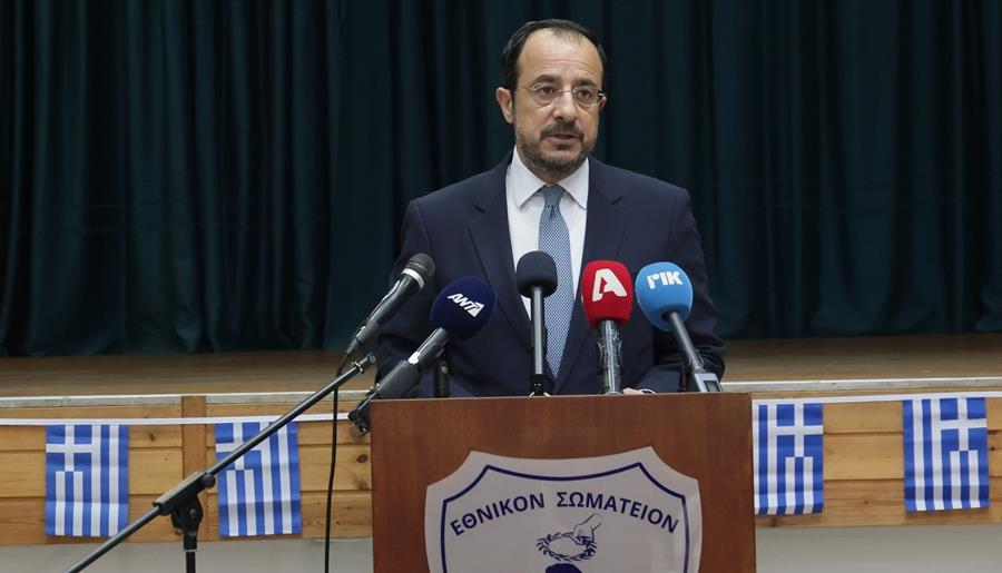 «Ως λαός, ως Πολιτεία, ακολουθώντας το παράδειγμα των αγωνιστών της φυλής μας και αν θέλουμε πραγματικά να τιμούμε τους αγώνες τους, οφείλουμε να βρισκόμαστε σε συνεχή εγρήγορση και να πράττουμε ό,τι είναι δυνατόν για να απελευθερώσουμε και να επανενώσουμε τον τόπο μας που από το 1974 είναι κατεχόμενη από την Τουρκία», ανέφερε ο Πρόεδρος Χριστοδουλίδης.