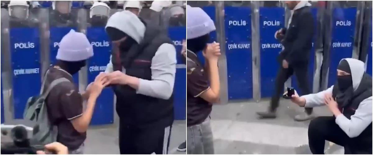 Το ζευγάρι συμμετείχε στις κινητοποιήσεις για την προφυλάκιση του Εκρέμ Ιμάμογλου. Και ενώ η ατμόσφαιρα ήταν αποπνικτική από τα δακρυγόνα και γεμάτη ένταση, ο νεαρός αποφάσισε να κάνει κάτι που θα θυμάται για πάντα.