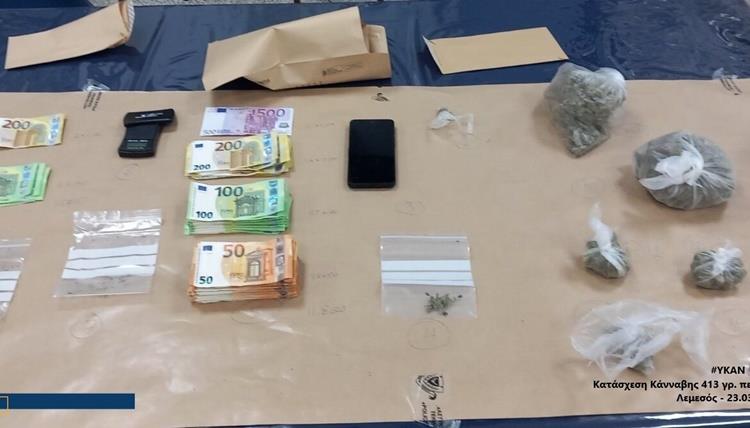 Συγκεκριμένα, μέλη της Υπηρεσίας Καταπολέμησης Ναρκωτικών – ΥΚΑΝ, διενήργησαν έρευνα γύρω στις 9.30 το πρωί της Κυριακής, δυνάμει δικαστικού εντάλματος, στην κατοικία και όχημα του 24χρονου, όπου εντόπισαν ποσότητα κάνναβης, συνολικού μεικτού βάρους 413 γραμμαρίων περίπου. Κατά την έρευνα εντοπίστηκε και το χρηματικό ποσό των 13,290 ευρώ, το οποίο κατακρατήθηκε για σκοπούς εξετάσεων αναφορικά με την προέλευση των χρημάτων.