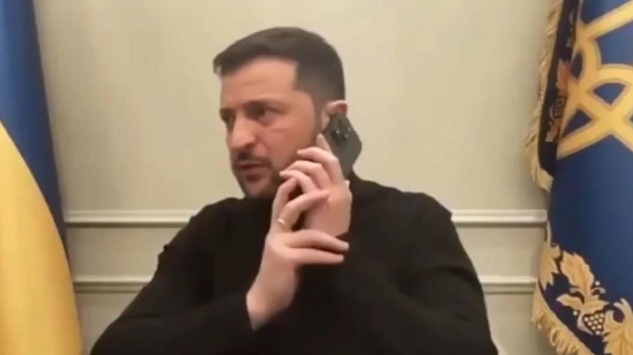 Σε βίντεο που έχει αναρτηθεί στο Χ φαίνεται ο Ζελένσκι να δέχεται ερώτηση από μια γυναίκα δημοσιογράφο όταν ξαφνικά σηκώνει το κινητό τηλέφωνο και ακούγεται να λέει: «Συγγνώμη Εμανουέλ, έχω μια συζήτηση με δημοσιογράφους, μπορώ να σε πάρω εγώ σε 15-20 λεπτά;»