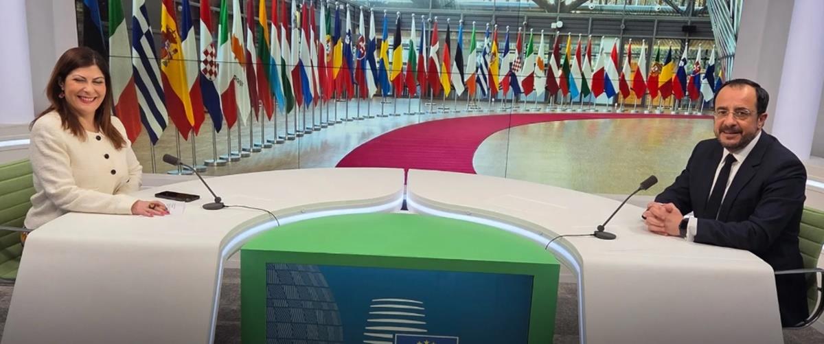 ΜΑΡΙΑ ΨΑΡΑ, EURONEWS: Έχω την τιμή να φιλοξενώ στο στούντιο του Ευρωπαϊκού Συμβουλίου στις Βρυξέλλες τον Πρόεδρο της Κυπριακής Δημοκρατίας Νίκο Χριστοδουλίδη, άρτι αφιχθέντα από τη Γενεύη, αλλά και μόλις έχοντας συναντήσει την ευρωπαϊκή ηγεσία. Και θέλω να ξεκινήσω από το τελευταίο, κύριε Πρόεδρε.