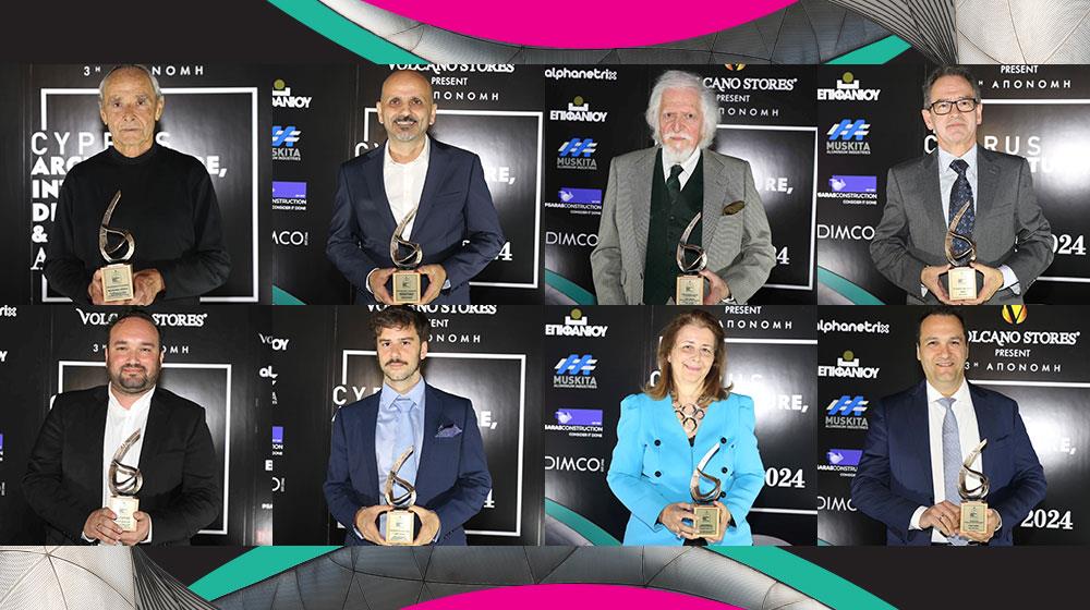 Βραβεία σε συνολικά επτά έργα σε τρεις διαφορετικές κατηγορίες βράβευσης, καθώς και ένα τιμητικό βραβείο «Lifetime Achievement-Αρχιτέκτονας», απονεμήθηκαν στο πλαίσιο των Κυπριακών Βραβείων Αρχιτεκτονικής, Aρχιτεκτονικής Εσωτερικού Χώρου και Ανάπτυξης Γης 2024, η τελετή απονομής των οποίων πραγματοποιήθηκε το βράδυ της Δευτέρας 17 Μαρτίου 2025 στο Δημοτικό Θέατρο Λευκωσίας, στην παρουσία του υπουργού Εσωτερικών, Κωνσταντίνου Ιωάννου.