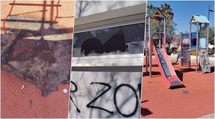 Άγνωστοι βανδάλισαν πάρκο στη Λάρνακα-Ζημιές σε γυάλινες προθήκες και αναγραφή συνθημάτων με σπρέι (pics)
