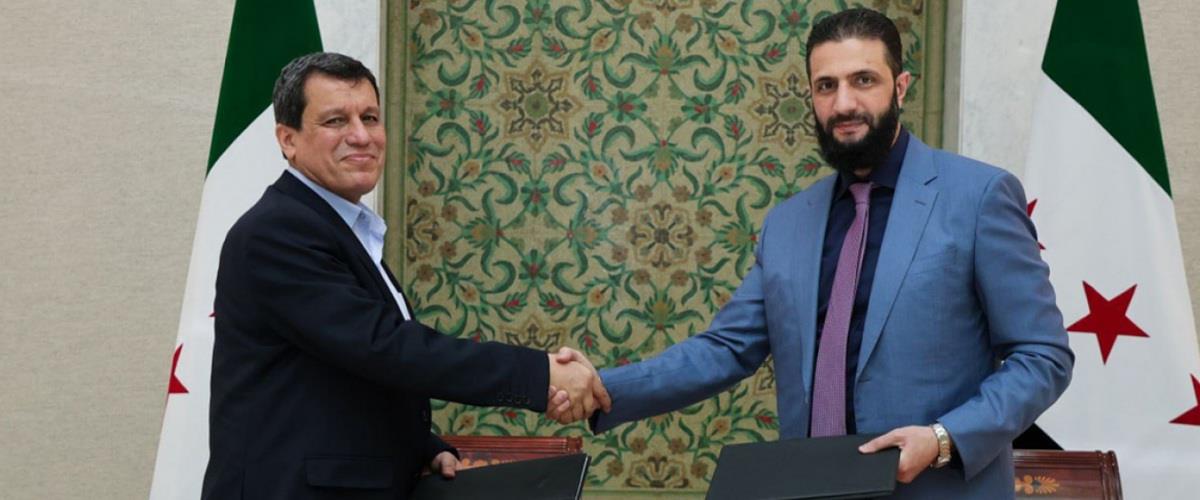 Η προεδρία έδωσε στη δημοσιότητα μια ανακοίνωση που υπεγράφη από τον Αλ Σάραα και την κουρδική πλευρά. Η συμφωνία αφορά «την ενσωμάτωση όλων των πολιτικών και στρατιωτικών θεσμών της βορειοανατολικής Συρίας» στους κόλπους της διοίκησης του συριακού κράτους.