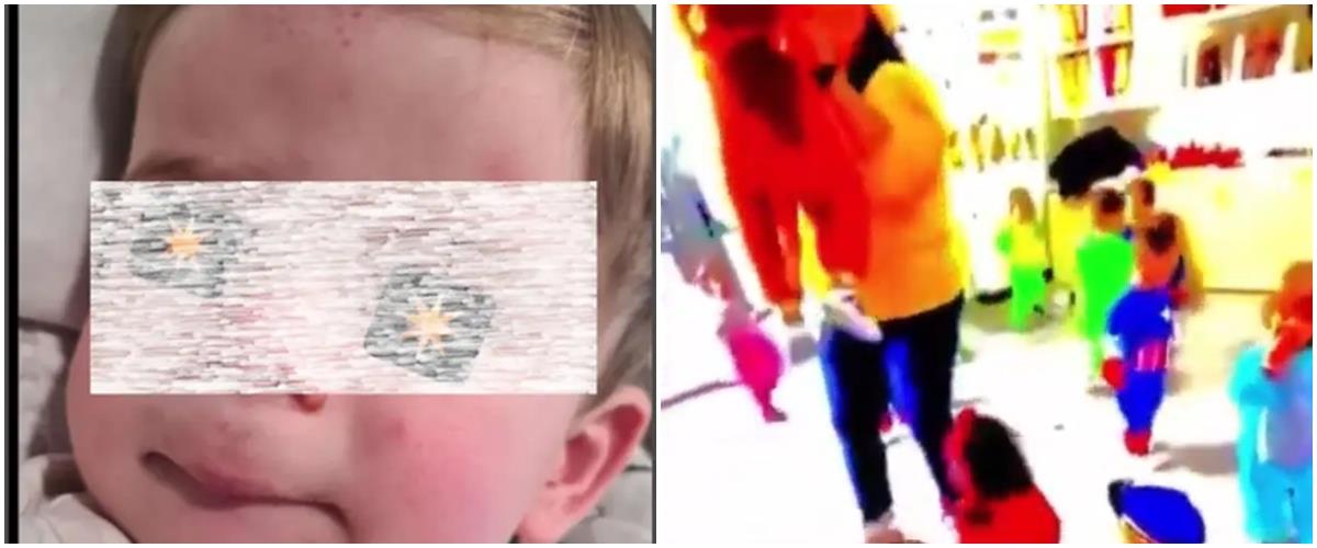 Όσον αφορά στην καταγγελία για το 13μηνο βρέφος, σύμφωνα με τα όσα ανέφερε η μητέρα, στις 21 Φεβρουαρίου, αφότου κλήθηκε από τον βρεφονηπιακό σταθμό να παραλάβει το παιδί της μετά από περιστατικό κατά το οποίο, όπως τις ανέφεραν, έπεσε από το κρεβατάκι του με αποτέλεσμα να χτυπήσει, μετέβη στο σταθμό μαζί με τον σύζυγό της και τον παιδίατρο, όπου διαπίστωσαν πως το παιδί ήταν γεμάτο αίματα.