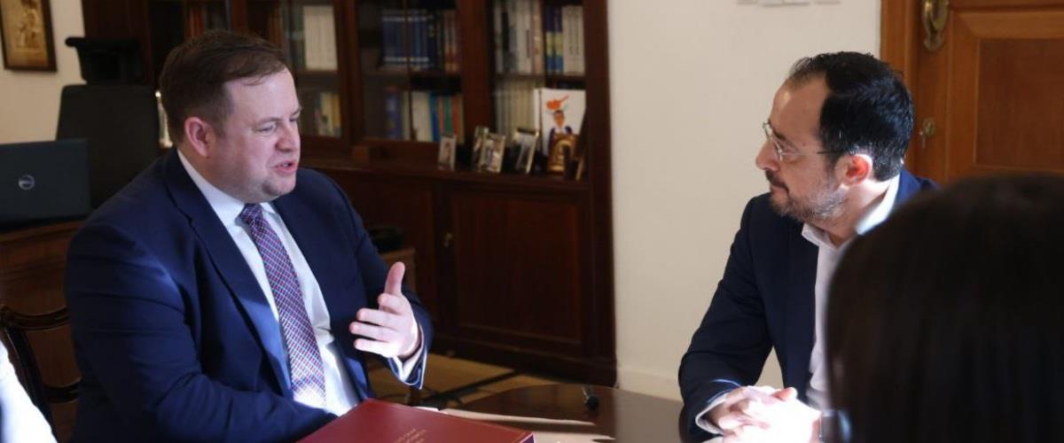 Ο Πρόεδρος της Δημοκρατίας κ. Νίκος Χριστοδουλίδης δέχθηκε σήμερα, το απόγευμα, στο Προεδρικό Μέγαρο, τον Υφυπουργό Ευρώπης του Ηνωμένου Βασιλείου κ. Stephen Doughty.