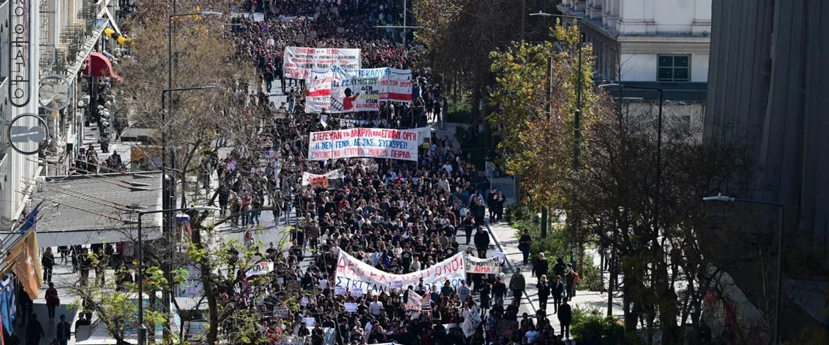 Με αίτημα την απόδοση ευθυνών για το σιδηροδρομικό δυστύχημα στα Τέμπη και «να μην υπάρξουν άλλα Τέμπη», μαθητές, φοιτητές και εκπαιδευτικοί πραγματοποιούν αυτή την ώρα πορεία διαμαρτυρίας στο κέντρο της Αθήνας.
