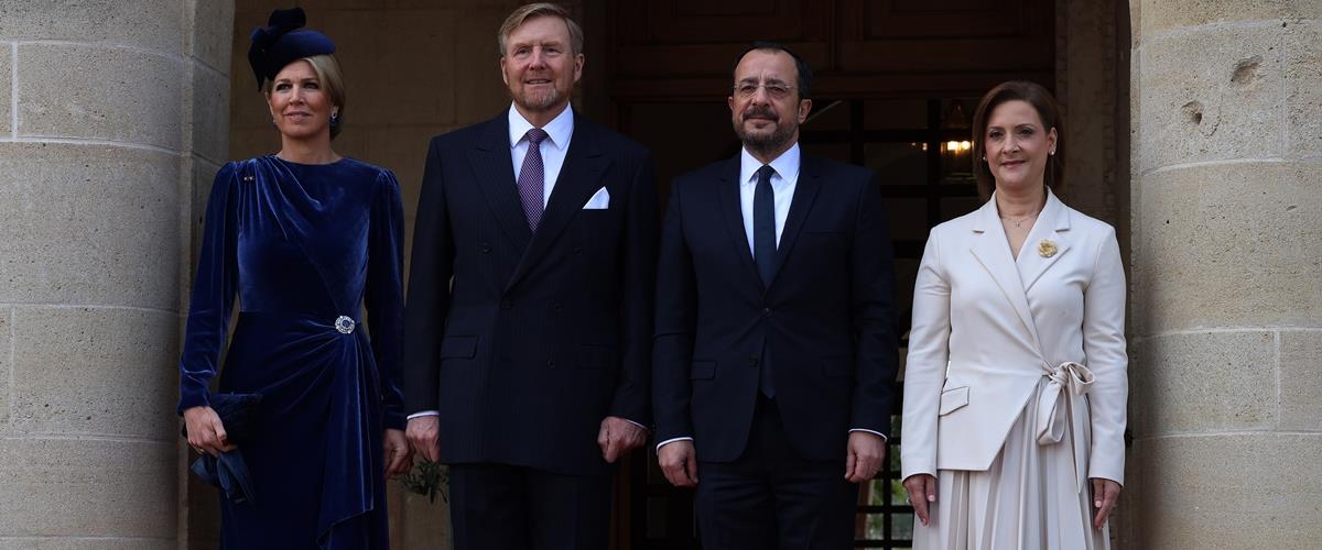 Στο Προεδρικό Μέγαρο έφθασε στις 09.30 το πρωί το βασιλικό ζεύγος της Ολλανδίας, ο Βασιλιάς Γουλιέλμος-Αλέξανδρος και η Βασίλισσα Mάξιμα της Ολλανδίας, τους οποίους υποδέχθηκαν ο Πρόεδρος της Δημοκρατία Νίκος Χριστοδουλίδης και η πρώτη Κυρία Φιλίππα Καρσερά Χριστοδουλίδη.