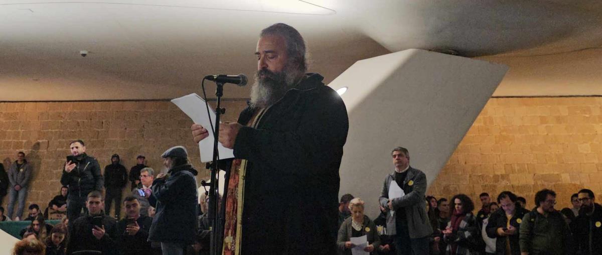 Ο πάτερ Χριστόδουλος στην ομιλία του ξέσπασε κατά του κράτους και αναφέρθηκε σε δύο πρόσωπα που σκοτώθηκαν σε τροχαία, αλλά και στον γιο της Εισαγγελέως στη Λάρισα, Βασίλη Καλογήρου, που εντοπίστηκε νεκρός πριν λίγες μέρες.
