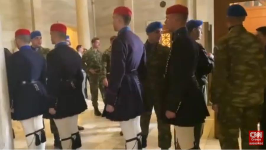 Ένα από τα φυλάκια των Ευζώνων στο μνημείο του Άγνωστου Στρατιώτη έχει παραδοθεί στις φλόγες.