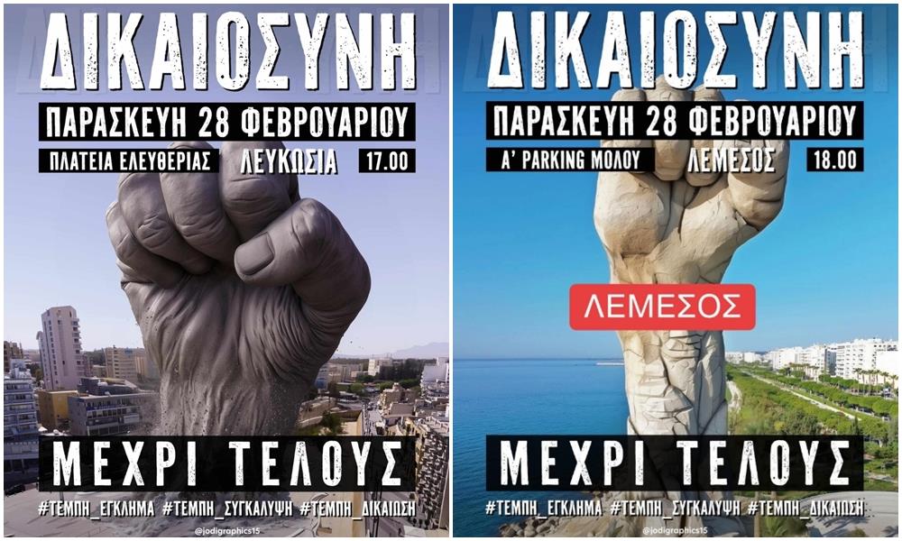 Οι εκδηλώσεις διαμαρτυρίας θα πραγματοποιηθούν την Παρασκευή σε Λευκωσία και Λεμεσό, στις 17:00 και 18:00 αντίστοιχα στις 28 Φεβρουαρίου. Συγκεκριμένα, στη Λευκωσία, η διαμαρτυρία αναμένεται να πραγματοποιηθεί στην Πλατεία Ελευθερίας, ενώ στη Λεμεσό η διαμαρτυρία θα πραγματοποιηθεί στο χώρο στάθμευσης του Μόλου.