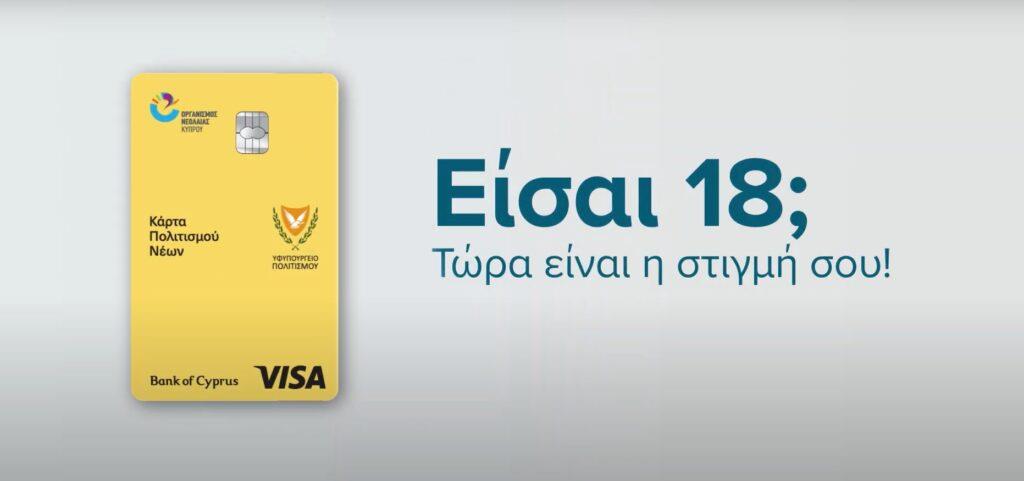 Σε ανακοίνωσή του, το Υφυπουργείο αναφέρει πως η Κάρτα Πολιτισμού Νέων αποτελεί μια καινοτομία για τα κυπριακά δεδομένα, αφού πρώτη φορά το κράτος δίνει την ευκαιρία στους νέους να συμμετέχουν σε πολιτιστικά δρώμενα της Κύπρου, που εκείνοι θα επιλέξουν, με κρατική χορηγία ύψους 200 ευρώ και επιπλέον 20 ευρώ από την Τράπεζα Κύπρου.