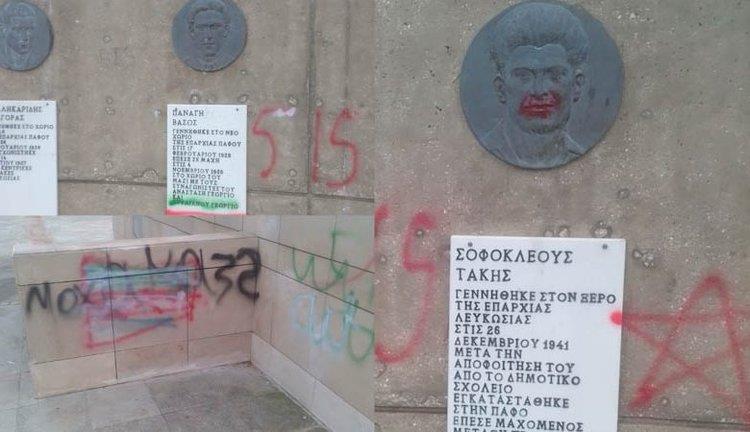 Μέλη του κεντρικού Αστυνομικού Σταθμού Πάφου μετέβησαν στο μνημείο και διαπίστωσαν ότι τα συνθήματα είχαν αναγραφεί με σπρέι, προκαλώντας ζημιές.