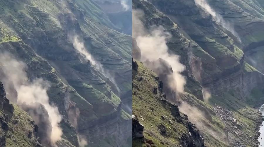 Σε βίντεο που δημοσιεύτηκε στη σελίδα Forecast Weather Greece στο Facebook, καταγράφεται ο ήχος των συνεχών δονήσεων, ενώ παράλληλα διακρίνονται κατολισθήσεις στην Καλντέρα.