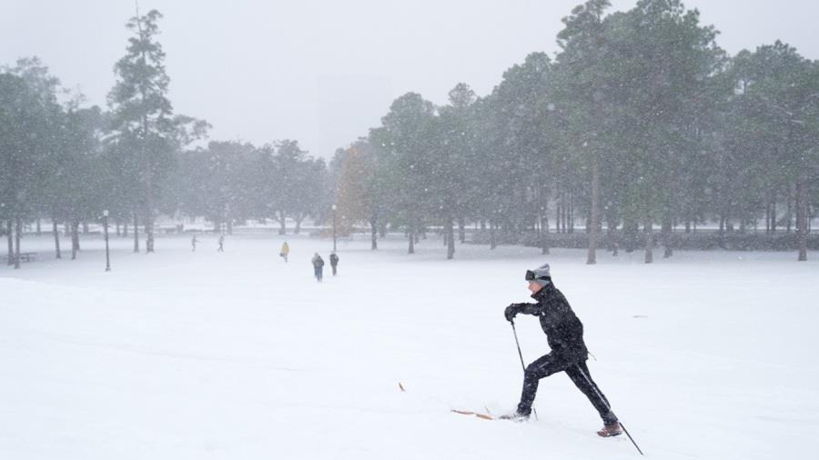 Μια σπάνια χειμερινή θύελλα πλήττει από σήμερα τις νότιες Πολιτείες των ΗΠΑ, κατά μήκος του Κόλπου του Μεξικού, με πυκνό χιόνι και ισχυρές ριπές ανέμου, σε μια περιοχή που τέτοιου είδους καιρικά φαινόμενα σπανίζουν. Την ίδια ώρα, μεγάλο μέρος της υπόλοιπης χώρας παραμένει στην «κατάψυξη».