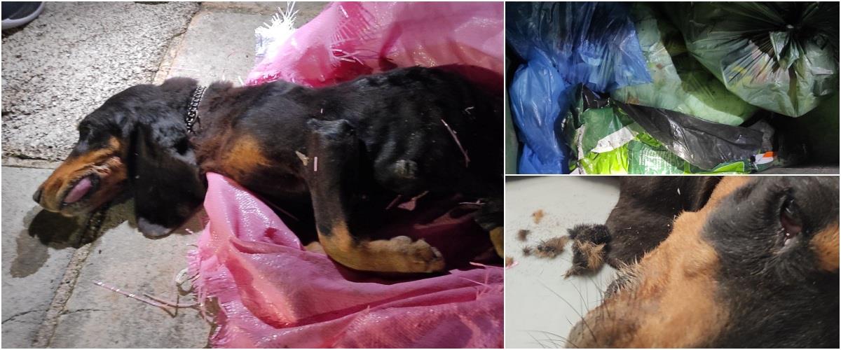 Το σκυλί ήταν σε άθλια κατάσταση, μόλις που ανέπνεε, η γλώσσα πρησμένη και είχε τρέμουλο στα μάτια, ενώ όπως σημειώνεται, αυτή την στιγμή ευρίσκεται σε κτηνιατρική ιδιωτική κλινική και άγνωστη η τύχη του ζώου.