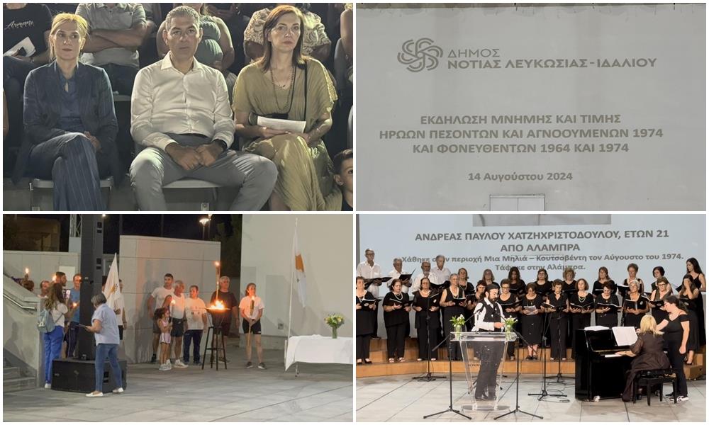 Τους 59 ήρωες πεσόντες και αγνοούμενους της Νότιας Λευκωσίας, τίμησαν σε μία σεμνή εκδήλωση ο δήμος Νότιας Λευκωσίας-Ιδαλίου, στην παρουσία των συγγενών και των οικογενειών τους, καθώς και πλήθος κόσμου που θέλησε να παρακολουθήσει την εκδήλωση, για να τους τιμήσουν.