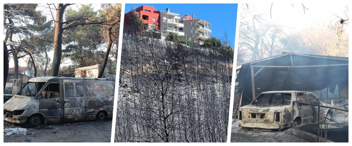 Οι δρόμοι της Πεντέλης, άλλοτε γεμάτοι ζωή, είναι τώρα καλυμμένοι με στάχτη και αποκαΐδια, ενώ οι καπνοί ακόμα αιωρούνται στην ατμόσφαιρα, δημιουργώντας μια ασφυκτική αίσθηση απελπισίας.