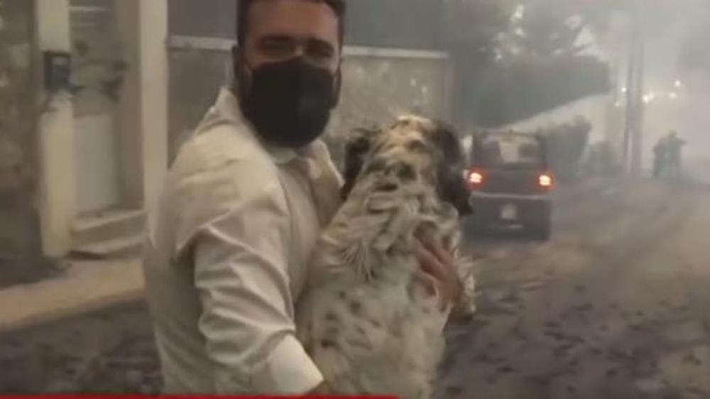 Κατά τη διάρκεια ζωντανής σύνδεσης από τη Νέα Πεντέλη, ο ρεπόρτερ του Star Άρης Λάμπος είδε έναν άσπρο σκύλο εμφανώς ταλαιπωρημένο και τρομαγμένο, ο οποίος σε μερικά σημεία είχε καεί από τη φωτιά, και έσπευσε να τον πάρει στην αγκαλιά του και να τον μεταφέρει σε ασφαλές σημείο. Ο σκύλος, που είχε λουράκι, έχει χαθεί προφανώς μέσα στον πανικό να εκκενωθεί η περιοχή, και τριγυρνούσε μόνος και αβοήθητος μέσα στους πυκνούς καπνούς.
