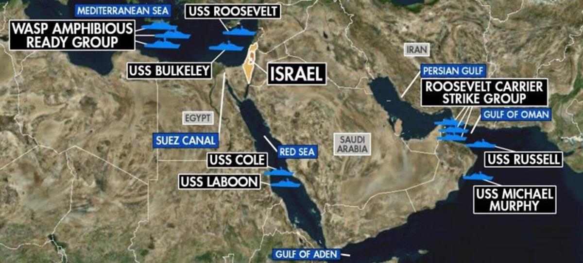 Μεσόγειος, Ερυθρά Θάλασσα και στενά του Ορμούζ έχουν κατακλυστεί από αμερικανικά πολεμικά πλοία και στρατιωτικές δυνάμεις ενόψει της αναμενόμενης ιρανικής επίθεσης στο Ισραήλ μετά τη δολοφονία του Ισμαήλ Χανίγια στην Τεχεράνη.