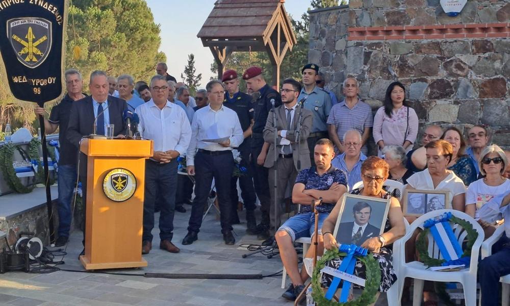 "Το 1974 χιλιάδες συμπατριώτες μας έχασαν τη ζωή τους κατά τη διάρκεια των πολεμικών επιχειρήσεων, δολοφονήθηκαν στυγνά ή αγνοούνται ακόμα. Ειδική αναφορά οφείλουμε να κάνουμε για όλους όσοι συμμετείχαν στις πολεμικές επιχειρήσεις. Σ’ αυτούς που κλήθηκαν να φυλάξουν Θερμοπύλες και κράτησαν μέσα τους τον δυσβάστακτο βουβό πόνο της φρικαλεότητας του πολέμου και της οδυνηρής απώλειας των συμπολεμιστών τους" είπε.