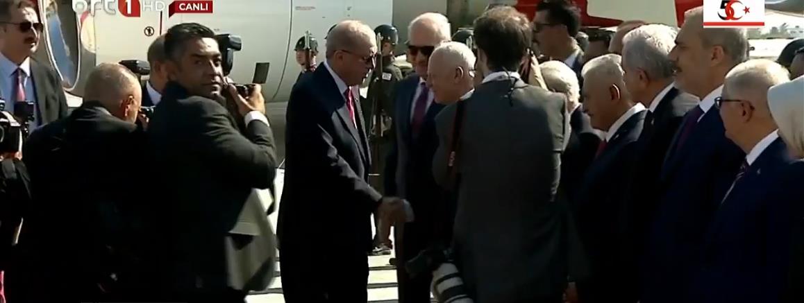Γύρω στις 09.25 έφτασε στα κατεχόμενα ο Τούρκος Πρόεδρος, Ταγίπ Ερντογάν και η συνοδεία του για να παραστούν στην καθιερωμένη παρέλαση στην κατεχόμενη Λευκωσία με αφορμή την 50η επέτειο της τουρκικής εισβολής.