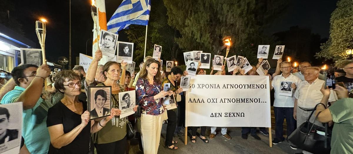 Λαμπαδοφορία στο κέντρο της Λευκωσίας, με κατάληξη το Λήδρα Πάλας, πραγματοποίησαν οι συγγενείς των Ελλαδιτών αγνοουμένων της τουρκικής εισβολής. Στο οδόφραγμα παρέδωσαν υπόμνημα στα Ηνωμένα Έθνη.