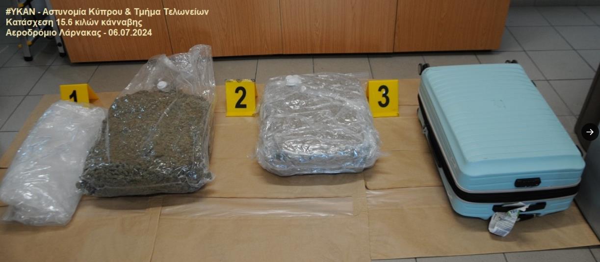 Στην κατάσχεση νέας μεγάλης ποσότητας κάνναβης, μεικτού βάρους 15.6 κιλών περίπου, προχώρησαν η Αστυνομία - ΥΚΑΝ και το Τμήμα Τελωνείων Κύπρου, στο πλαίσιο της συνεργασίας τους και των δράσεων για πάταξη αδικημάτων εισαγωγής και εμπορίας ναρκωτικών.