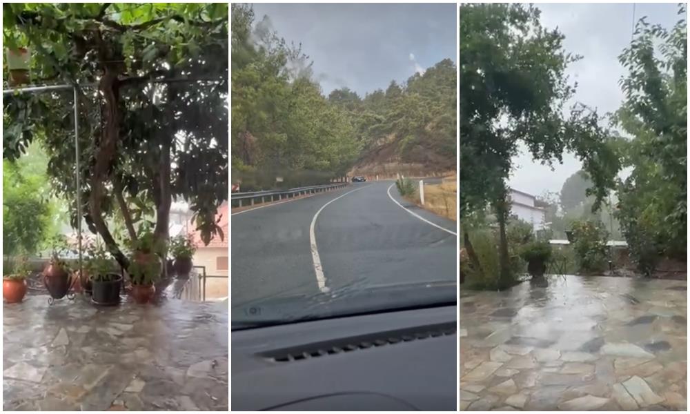 Συγκεκριμένα, λίγο πριν τις 3:00 το απόγευμα, σε διάφορες περιοχές στα ορεινά, άρχισε να βρέχει και σε κάποια σημεία έριξε και χαλάζι, με το σκηνικό να μην θυμίζει τόσο καλοκαιρινό.