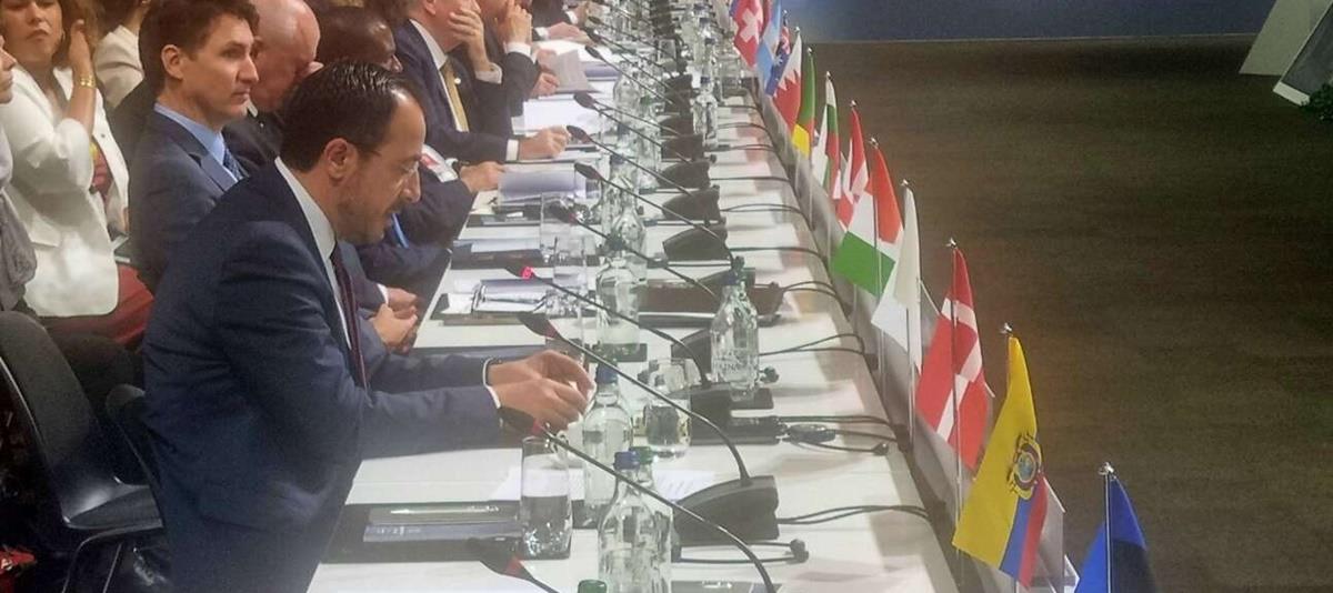 Καταλήγοντας, ο Πρόεδρος Χριστοδουλίδης εξέφρασε την ελπίδα ότι η Σύνοδος θα ανοίξει τον δρόμο για έναν ουσιαστικό διάλογο με αποτελέσματα, που θα χαράξει τελικά μια πορεία προς μια συνολική ειρήνη, με βάση το διεθνές δίκαιο και τις βασικές αρχές του Χάρτη των Ηνωμένων Εθνών.