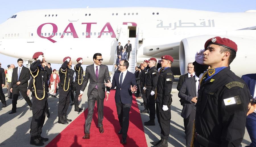 Ο Πρόεδρος της Δημοκρατίας κ. Νίκος Χριστοδουλίδης υποδέχθηκε σήμερα, στο αεροδρόμιο Λάρνακας, τον Εμίρη του Κατάρ Sheikh Tamim bin Hamad Al Thani, o ο οποίος έφθασε στην Κύπρο το απόγευμα, για επίσημη επίσκεψη, κατόπιν πρόσκλησης του Προέδρου Χριστοδουλίδη.