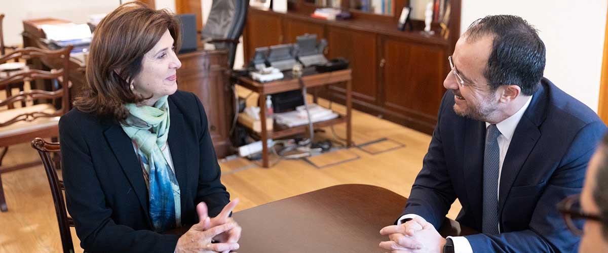 «Αυτό το οποίο η ίδια είχε αναφέρει είναι η έκπληξή της ως προς την απόρριψη από πλευράς του κ. Τατάρ μιας κοινής συνάντησης των δύο ηγετών στην παρουσία της», είπε. «Είναι κάτι που ο Πρόεδρος της Δημοκρατίας είχε αναφέρει από την πρώτη στιγμή και είχε τοποθετηθεί και υπογραμμίσει το γεγονός ότι αν υπάρξει αυτή η κοινή συνάντηση, θα είναι προς τη θετική κατεύθυνση. Δυστυχώς, μέχρι στιγμής αυτό δεν έχει καταστεί εφικτό», πρόσθεσε. Θεωρούμε ότι είναι μέσα από τον διάλογο που μπορεί να υπάρξει πρόοδος, ανέφερε, προσθέτοντας πως, «αυτό είναι το πρώτο αυτονόητο βήμα που θα έπρεπε ήδη να έχει γίνει».